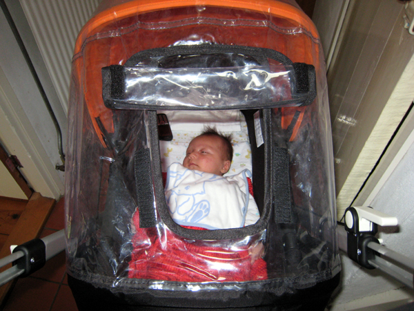 It only *seems* over the top Yes, we have a gigantic stroller. It is over the top. Over the top enough that parent bloggers mock our stroller. They do not live in the Netherlands. What you see is the rain tarp. Yes, we actually use it because we walk in the rain. Everyone walks in the rain over here because it rains a whole lot. We also have a bug net. You need that because we like to walk with Aldus; we live near two national forests; we end up walking around in the forest. Forests have bugs. We have a bug net. As not many people talk about actual bad things about