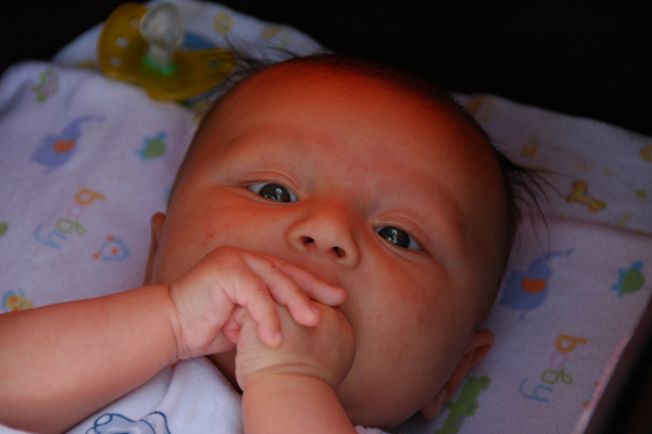 You can barely tell that he used to have really light, blue colored eyes. Click through the picture and take a closer look at his eyes.